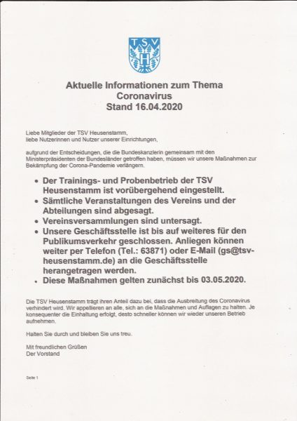 TSV- Corona 17. April 2020 Von TSV Heusenstamm Aus Beitrags-Navigation Vorheriger BeitragZurück TSV- Corona